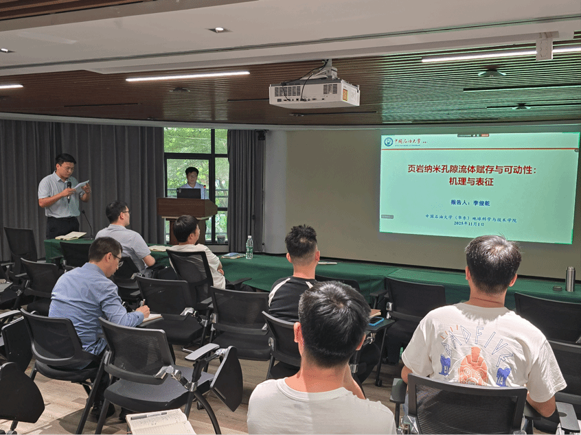 报告中,李俊乾副教授结合自身科研经历,分享了在页岩储层流体赋存机理研究领域的探索与突破,鼓励青年师生在学术领域深耕细作、勇于创新。报告结束后,他与现场及线上师生展开热烈互动,针对页岩纳米孔隙流体研究的技术难点、未来方向等问题答疑解惑,现场氛围十分活跃。